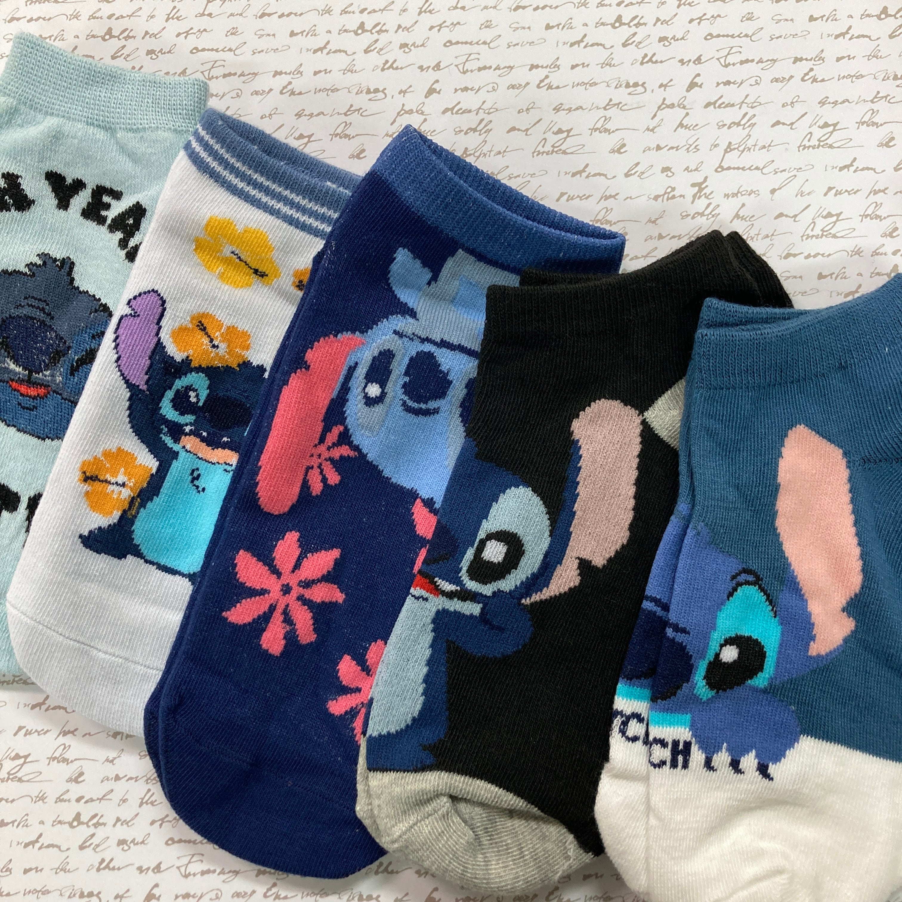 スティッチキャラクターデザインされた可愛いソックス5足セット。